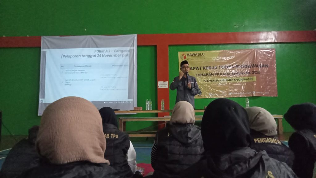 Liputan CS – CARINGIN. Sebanyak 190 Pengawas Tempat Pemungutan Suara (PTPS) di Kecamatan Caringin mengikuti bimbingan teknis (Bimtek) yang bertujuan meningkatkan pemahaman mereka mengenai tugas, fungsi, dan pengoperasian aplikasi Sistem Pengawas Pemilih (Siwaslih). Kegiatan yang diadakan pada Minggu (13/11) ini bertempat di Gedung Olahraga (GOR) Desa Pasir Muncang, Kecamatan Caringin.