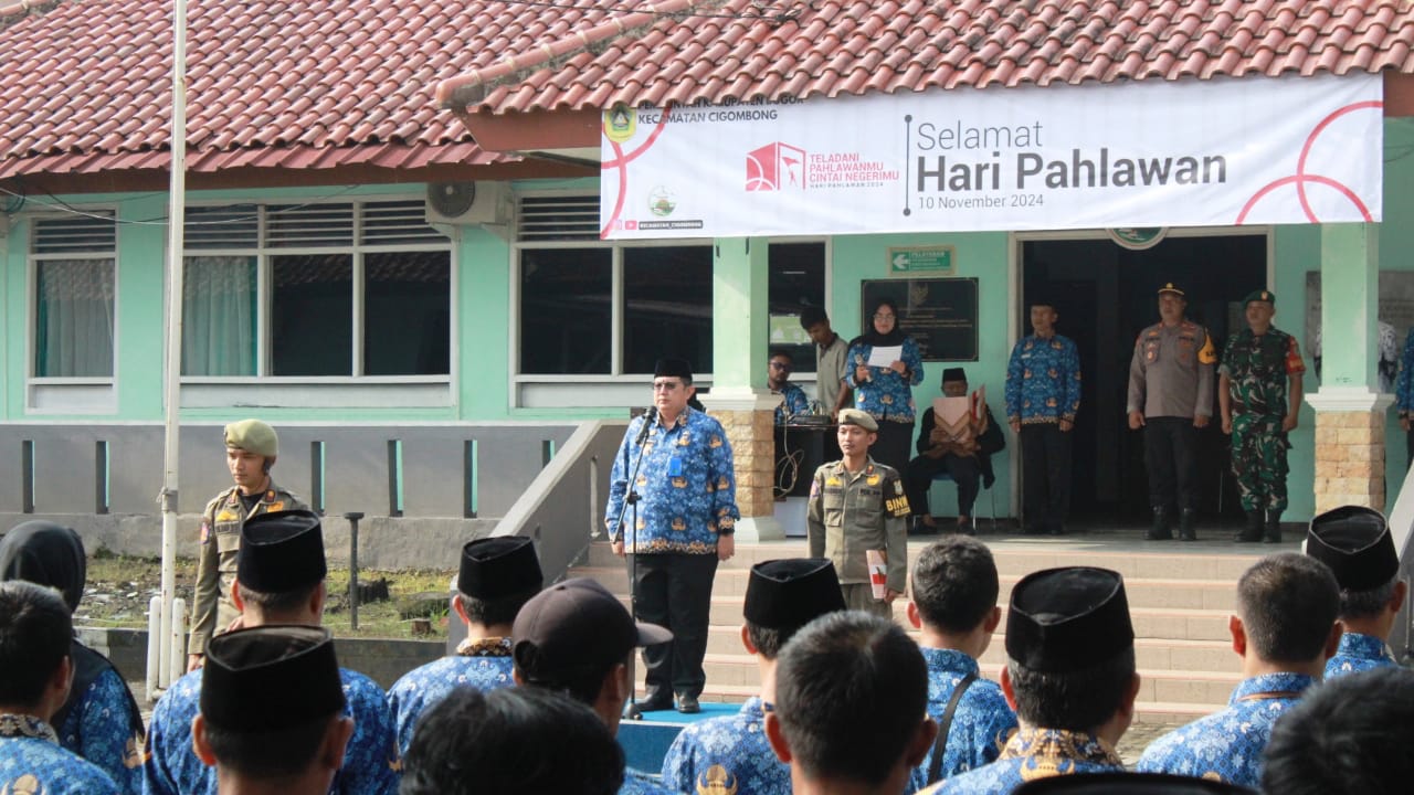 Camat Cigombong, R.E. Irwan Somantri, S.STP., bertindak sebagai inspektur upacara. Dalam pidatonya, beliau mengajak seluruh peserta untuk menjadikan peringatan Hari Pahlawan sebagai inspirasi dalam menghayati semangat dan pengorbanan yang telah dilakukan para pahlawan demi kemerdekaan Indonesia.