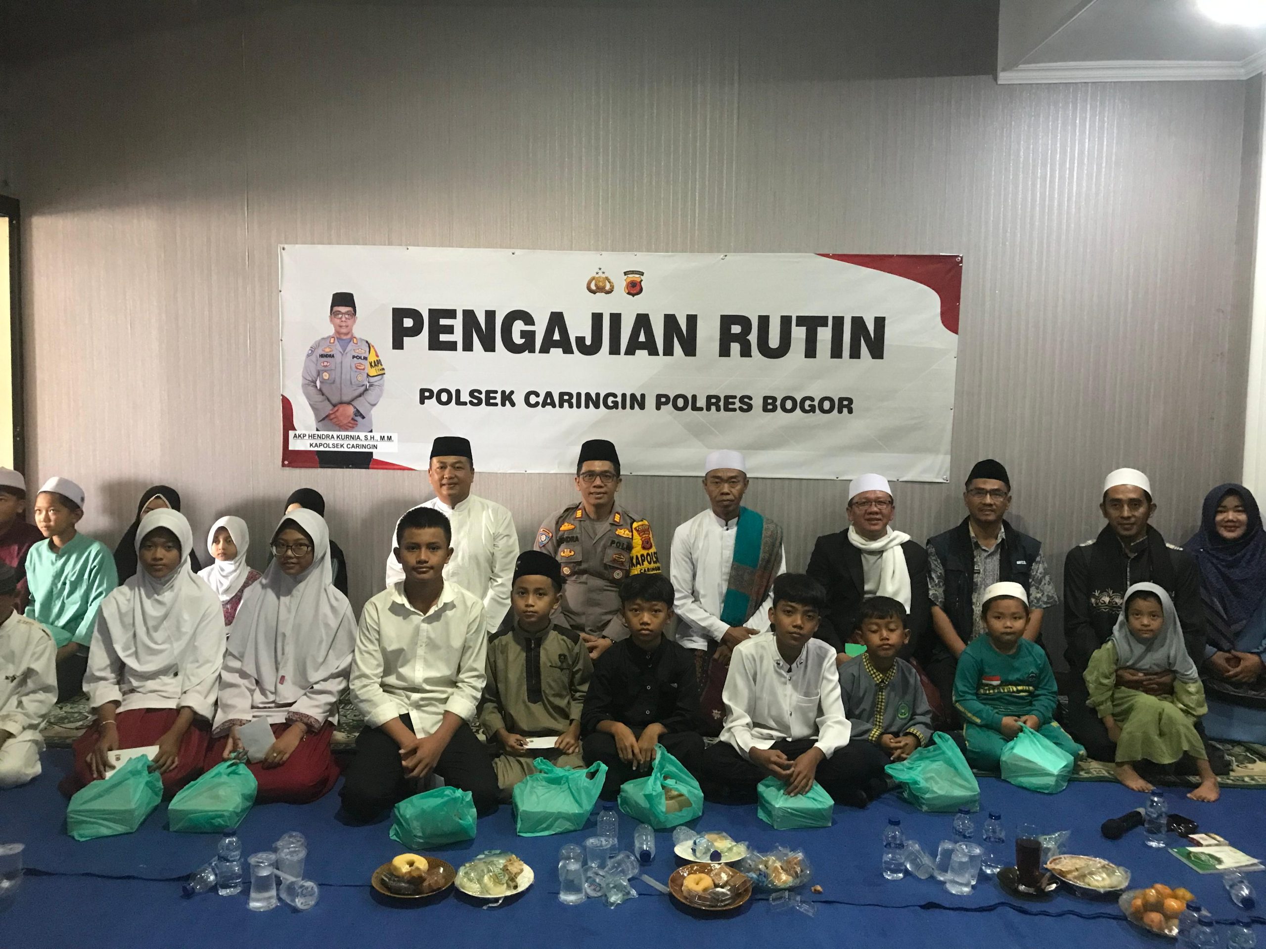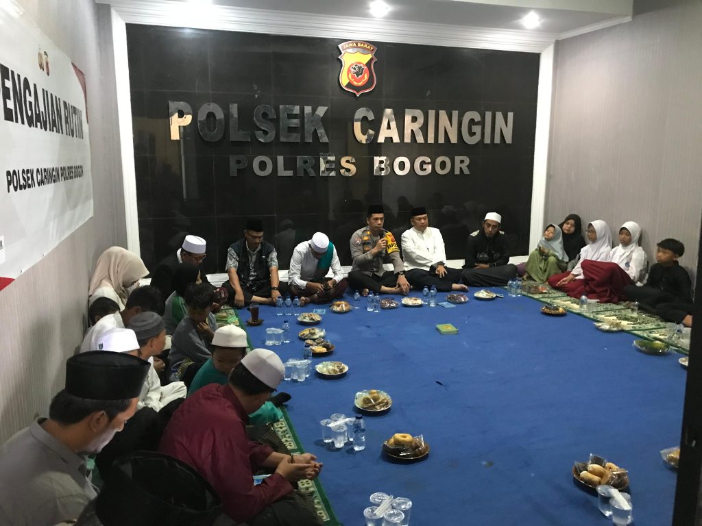 CARINGIN – Pengajian Bulanan di Markas Kepolisian Sektor (Mapolsek) Caringin menjadi ajang silaturahmi dan sekaligus menyantuni 20 orang anak yatim dan piatu. Kegiatan Pengajian Bulanan yang digelar Jumat pekan lalu tersebut menghadirkan penceramah ustad Cepot Bogor yang memberikan tausiah kepada seluruh jajaran anggota Polsek Caringin.