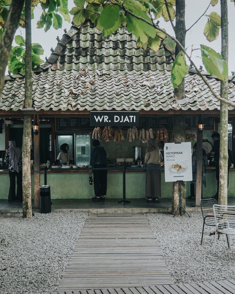 Tidak hanya sekadar tempat ngopi, Kopi Nako Kebon Jati juga menyediakan berbagai pilihan makanan dan minuman. Bagi yang ingin menikmati sajian makanan berat, ada Warung Djati dengan aneka hidangan lokal. Lalu ada ES, gerai khusus minuman segar, termasuk beragam jus seperti jus mangga yang segar dan tidak terlalu manis, cocok untuk diminum saat cuaca terik. Tak ketinggalan Bakso Djati yang menawarkan menu bakso dan siomay, pas untuk mengganjal perut. Kopi Nako Kebon Jati benar-benar menghadirkan pengalaman kuliner yang lengkap dan menyenangkan, terutama bagi mereka yang menginginkan suasana santai di tengah alam.