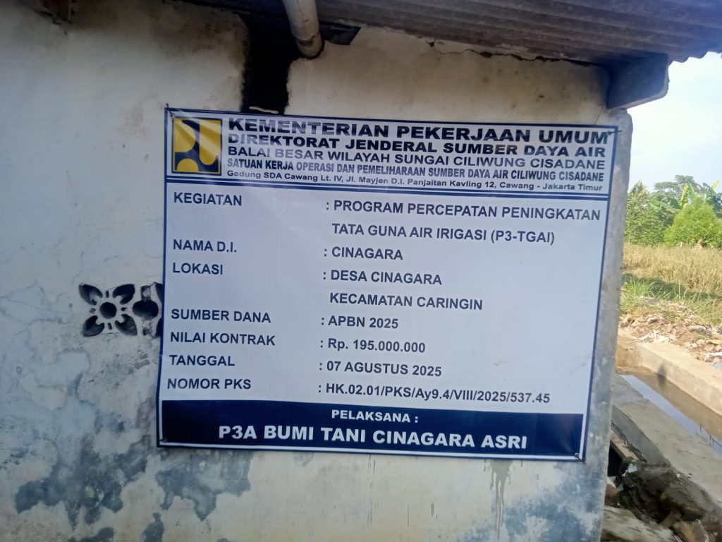 Sementara itu, salah satu Ketua BPD Desa Cinagara, Jakaria, menegaskan pentingnya rasa memiliki dari para petani terhadap fasilitas irigasi yang sudah diperbaiki. Ia mengingatkan agar masyarakat menjaga kebersihan saluran, terutama dari sampah yang dapat menghambat aliran air.